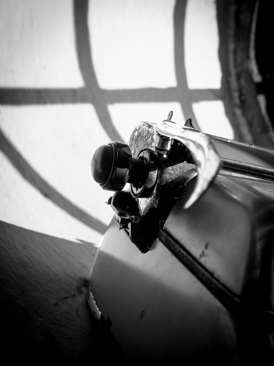 Ein Relikt aus einer anderen Zeit gezeigt im Kontrast aus Licht und Schatten. Teile sind sichtbar, manches noch verborgen im Dunkeln. Nur eine Ahnung zeigt sich im Spiegelbild.