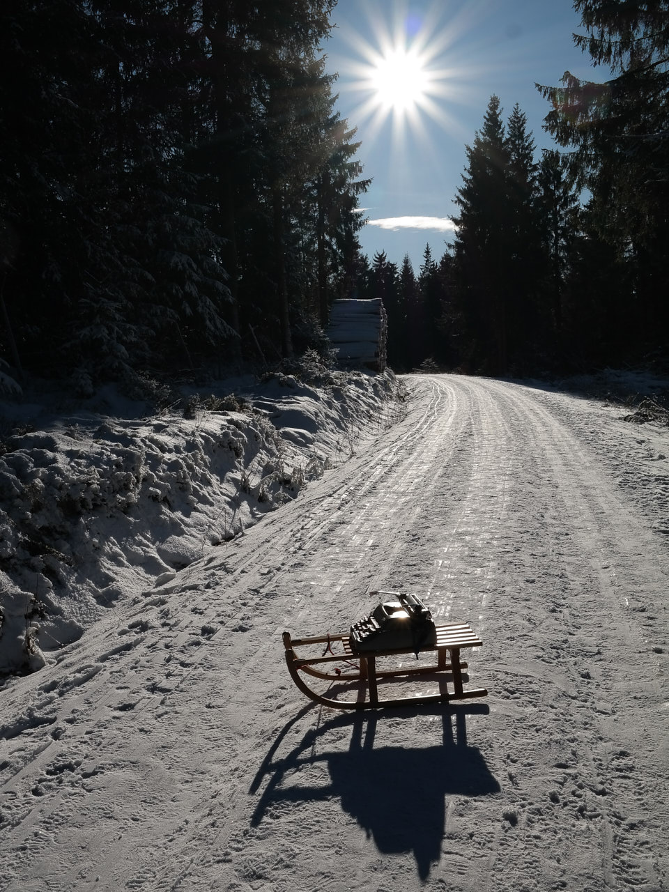 Mein Fotograf hat ausgerechnet mich, eine alte aus dem Sperrmüll gerettete Schreibmaschine, als Fotomodell auserkoren. Kreative Fotografie nennt er das! Was lässt man nicht über sich ergehen, wenn die Alternative unbemerkt vor sich hin rosten bedeutet oder gar der Gang in die Metallschmelze. Aufgrund meiner Unbeweglichkeit musste ich mich so auf die vom Fotografen gewählten Shooting-Orte und Szenerien einlassen.