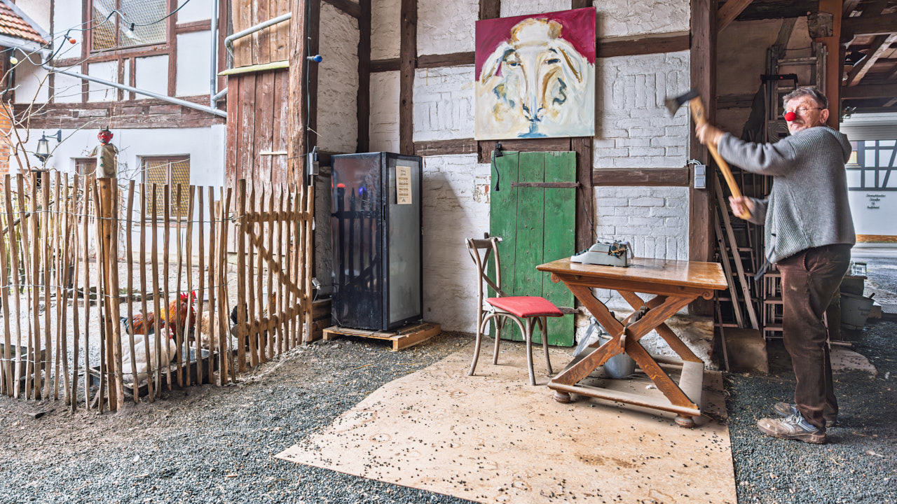 Selbstausgelöst, als meine Kamera zwischen Autositz und Kopfstütze klemmte und ich eine Stunde lange zusammen mit der »Groma Brilliant Super« über dem Lenkrad thronend mit Tempo 30 um den Block fuhr, bis ich überholt wurde. Selbstausgelöst, nachdem ich einen ganzen Nachmittag lang im Schnee ausharrte, bis die Hühner endlich geneigt waren, sich für mich auf der »Groma Brilliant Super« wie zufällig zu positionieren. Selbstausgelöst, als es »x«-Versuche im fast Dunkel der Scheune bedurfte, um zur »Groma Brilliant Super« zu spurten, bevor der Selbstauslöser an der Kamera nicht ohne mich abzulichten auslöste.
